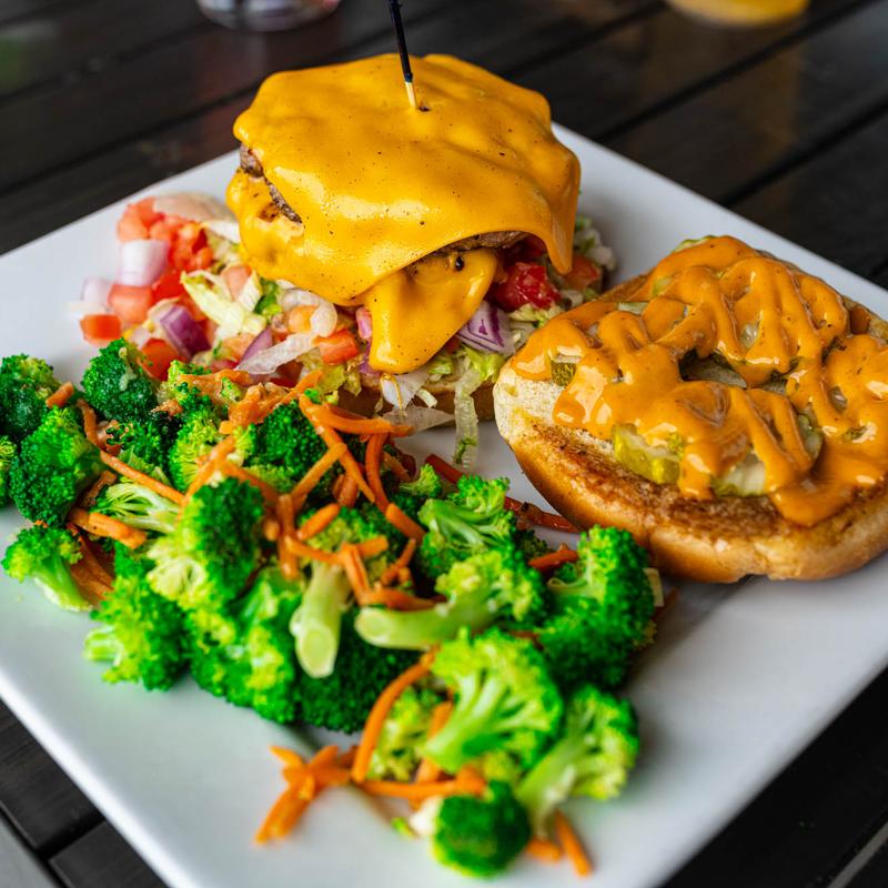 Sub Black Bean Veggie Patty for any Booga. Served with choice of fries, chips, cottage cheese, or slaw | Substitute: Tots +$1.00 | Brussel Sprouts +$1.00 | O-Rings +$2.00 | Sweet Potato Fries +$2.00 | Side Salad +$3.00 | Add an extra *Patty +$4.00 | Fresh Veggies +$1.00