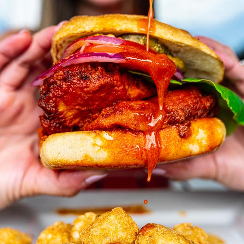 Served with choice of fries, chips or slaw. Get any sandwich served as a wrap. • Substitute: Tots +$1.00 | O-Rings +$2.00 | Fresh Veggies +$1.00 | Sweet Potato Fries +$2.00 | Side Salad +$3.00 | White Mac & Cheese +$3.50 • Make any Fries or Tots "Loaded" for an additional $2.50